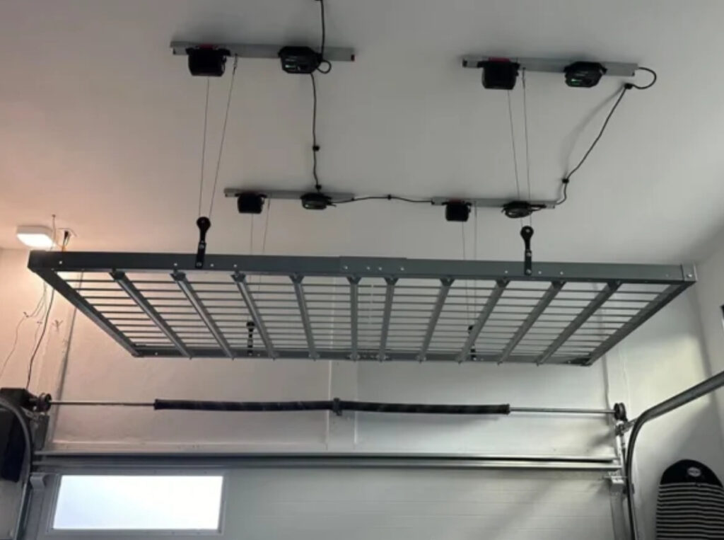 The safest overhead storage systems are those made from commercial-grade materials — powder-coated steel rather than wire or plastic — and installed by professionals who assess your specific ceiling structure before installation. Systems sold at retail are engineered to a minimum acceptable standard and rely on the homeowner to correctly identify and anchor to structural members, which is where most failures originate. A turnkey, professionally anchored system is the only option that guarantees both capacity and structural safety.