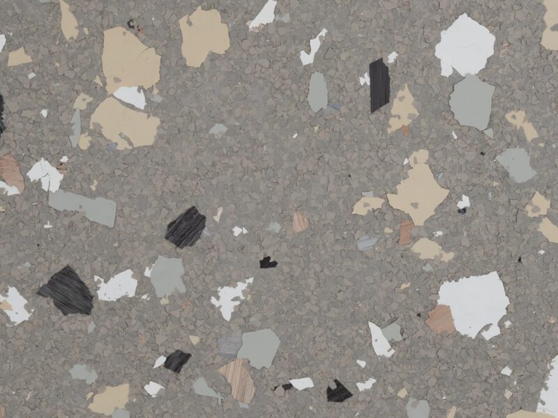 Third is a full layer of decorative chips. The chips are broad-cast for even and full coverage. Full range of colors available.
