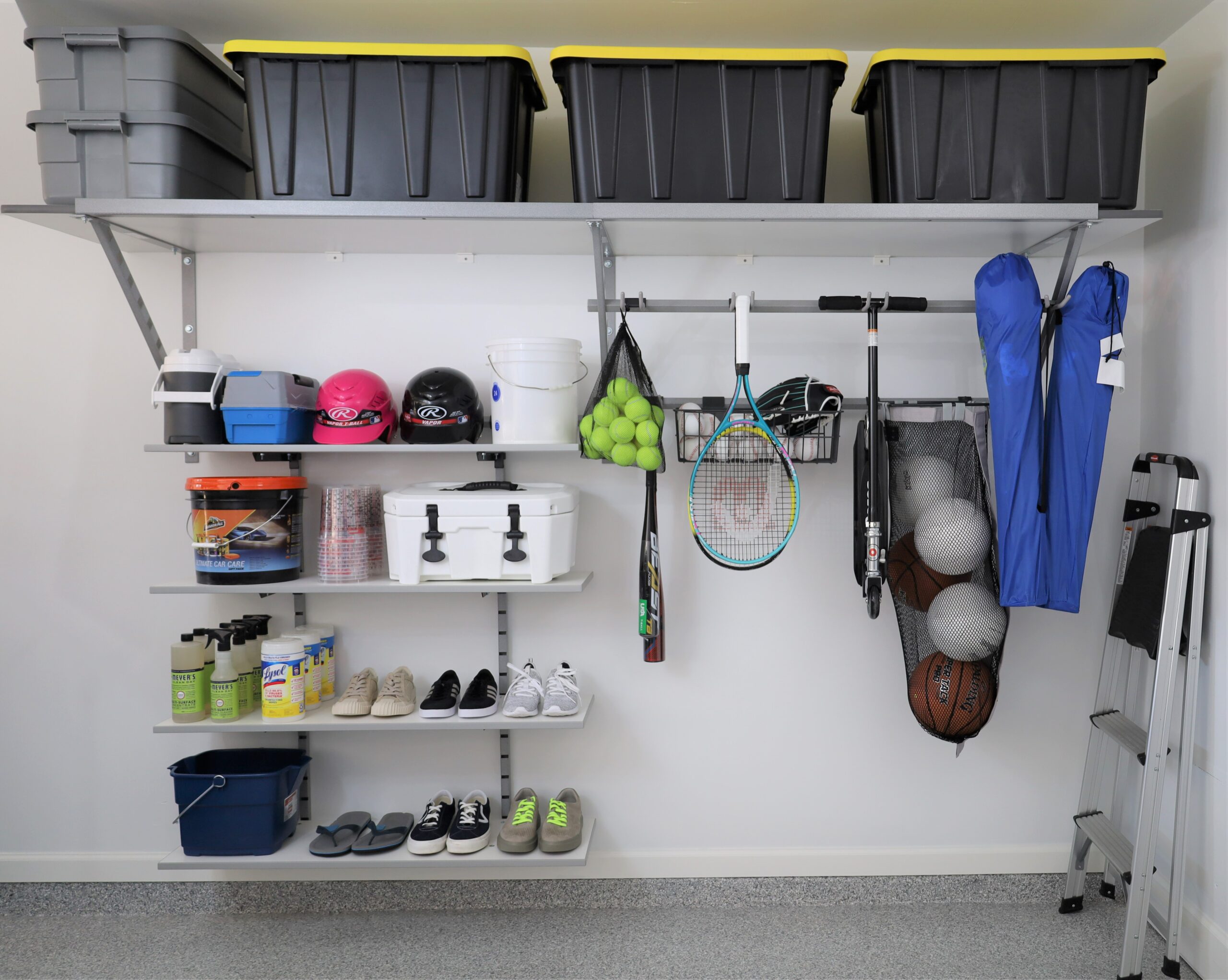 - Separates zones for sports, tools, seasonal décor, and everyday items
