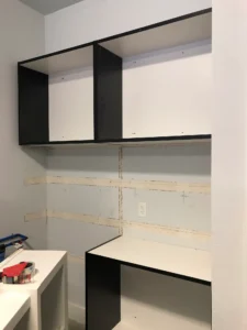 This wasn’t a one-day install. The scope required a return visit to complete six additional 36″ shelving units, finish one remaining wall elevation, and install the slat wall inside the 24″ cabinet. That’s not unusual on a job this size — sequencing a multi-system installation across four walls takes time, and doing it right matters more than doing it fast.