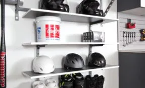 The design and weight capacity of Monkey Bars garage shelving is durable and strong. One single shelf allows you to maximize the full wall in your garage! The space above the shelf for long term storage, while using the wall space below to hang items on the bars and hooks for quick access. Providing you the best garage organization you need!