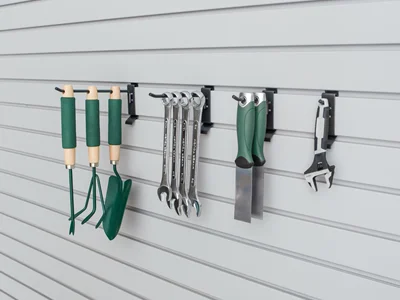 Slat Wall storage solutions for the walls of your garage and other storage spaces provide a very versatile option for may of your storage needs. Your ability to move accessories virtually anywhere on the slat wall area, and remove them when not needed, makes for a great addition to any storage solution.
